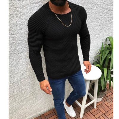 2023 Ngoại thương xuất khẩu Âu Mỹ Mới Áo len ôm cổ tròn Dài tay Áo len dệt kim nam Amazon Áo len nam