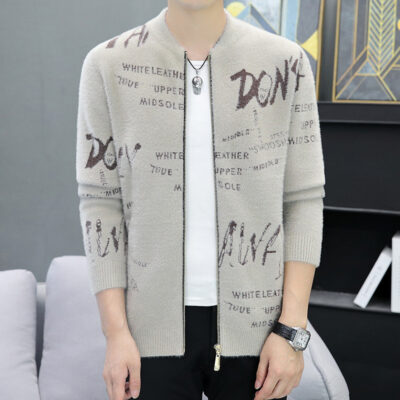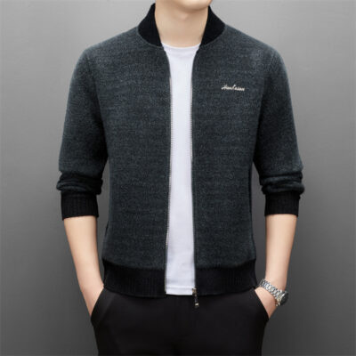 Nam Thu Đông 2023 Mới Đơn Giản Len Đồng Phục Bóng Chày Dây Kéo Áo Len Cardigan Áo Khoác Nam Cotton Dệt Kim Cardigan Áo Khoác Ngoài