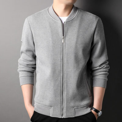 Mùa thu và mùa đông mới thời trang nam công sở phù hợp với cổ áo đứng dây kéo màu áo khoác cardigan áo len WH1008