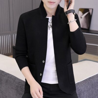 Mùa Xuân Và Mùa Thu 2022 Mới Nam Áo Len Cardigan Màu Slim Công Sở Áo Len Dệt Kim Áo Khoác