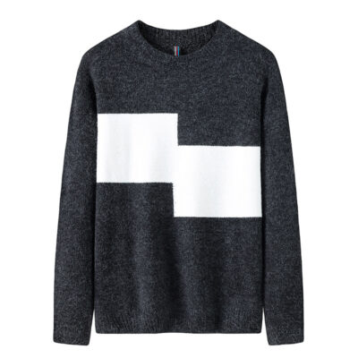Áo len cashmere nam cổ tròn dày ấm mùa đông giản dị Áo len cashmere nguyên chất 100% chạm đáy áo len dệt kim phối màu