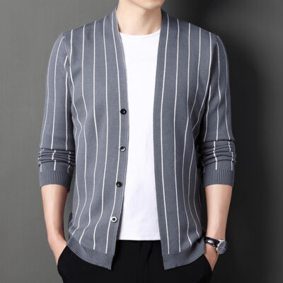 Mùa Thu Áo Len Cardigan Nam Dệt Kim Áo Khoác Sọc Dọc Hợp Thời Trang Mỏng Phần Trẻ Trung Phong Cách Hàn Quốc Mặc Bên Ngoài Áo Len
