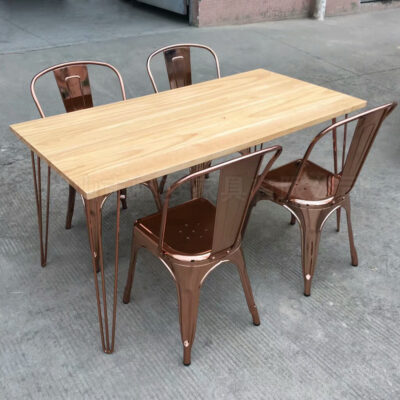 Khách sạn khách sạn nhà căng tin nhà hàng sắt rèn vàng bàn ăn gỗ nguyên khối hoàn chỉnh bàn ăn bàn cà phê bàn cà phê