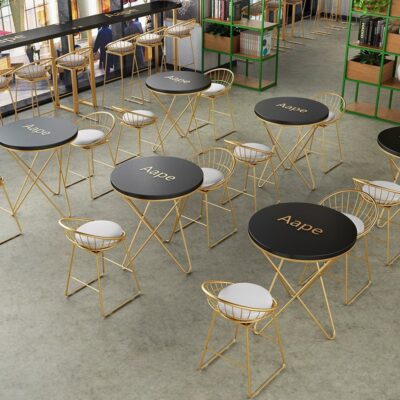 Bắc Âu ánh sáng sang trọng cao cấp bàn ghế kết hợp thanh sắt rèn quầy bar ghế quán cà phê quán trà sữa bàn tròn đá cẩm thạch