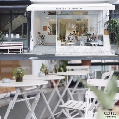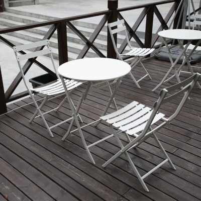 Quán trà sữa bàn ghế ngoài trời gấp quán cafe ngoài trời bàn ghế sắt rèn kết hợp gấp bộ bàn ghế ban công