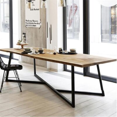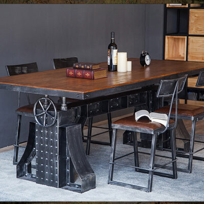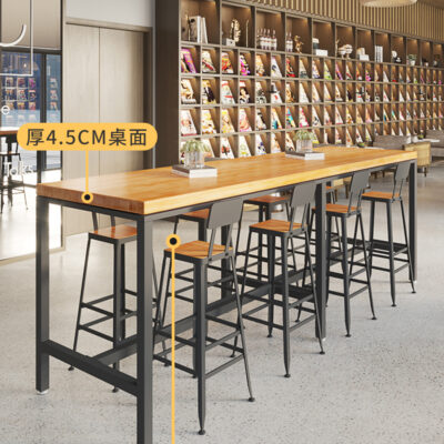 Bàn bar dài sắt rèn gỗ đặc bàn ăn hình chữ nhật thương mại cafe shop bánh cao cấp kết hợp bàn ghế 1216