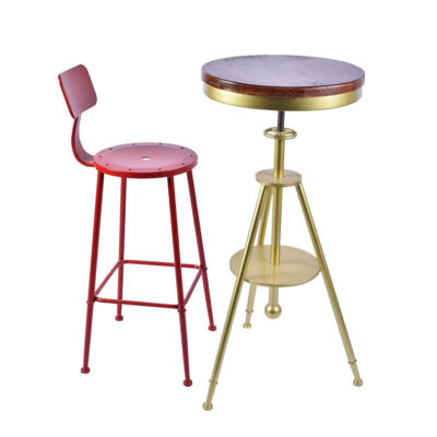 Bắc Âu Gỗ Chắc Chắn Quầy Bar Bàn Ghế Quán Cà Phê Bàn Tròn Cao Sắt Rèn Thanh Giải Trí Bàn Ghế Kết Hợp Tùy Biến