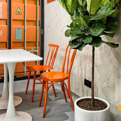 Internet nổi tiếng ins trà sữa cửa hàng tráng miệng ghế ăn màu cam cafe bàn ghế kết hợp ghế sắt rèn bàn tròn màu trắng ghế ăn