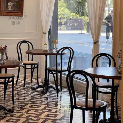Bàn ăn bằng sắt rèn phong cách cổ điển của Mỹ quán cà phê quán trà sữa gỗ nguyên khối giải trí bàn tròn và ghế kết hợp dựa vào tường bàn đàm phán món tráng miệng