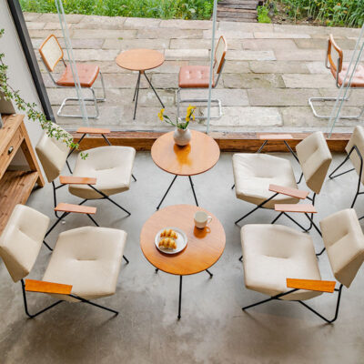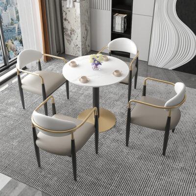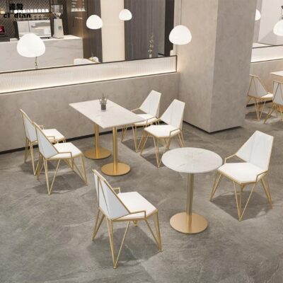 Bắc Âu tối giản nhà hàng quán cà phê bàn ăn đá phiến tròn trong món tráng miệng uống quán trà sữa kết hợp bàn ghế giải trí