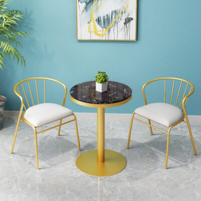 Hiện đại tối giản một bàn tròn và hai ghế kết hợp quán trà sữa quán cà phê bàn tròn nhỏ bằng đá cẩm thạch Bàn ghế nghệ thuật bằng sắt vàng