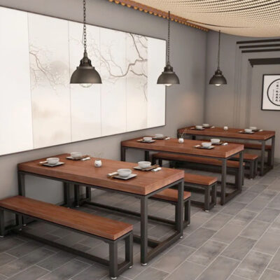 Bán buôn căng tin Bàn ghế nhà hàng thương mại bàn dài băng ghế quán cà phê cửa hàng mì rèn sắt rắn gỗ dài kết hợp bàn ăn và ghế