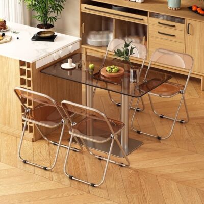 Bàn ghế phong cách công nghiệp lưới ins đỏ kết hợp bàn ăn và ghế nhà Syria bàn kính cường lực ảnh cá tính