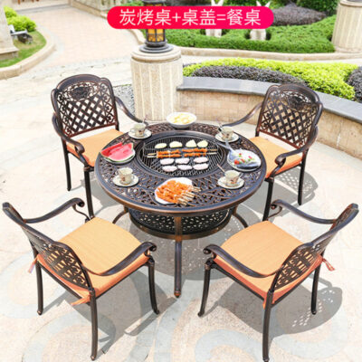 Bàn ghế nướng ngoài trời sân nhôm đúc bếp nướng điện không khói bếp nướng than hoa sân vườn sắt rèn ngoài trời kết hợp bàn ăn thông thường