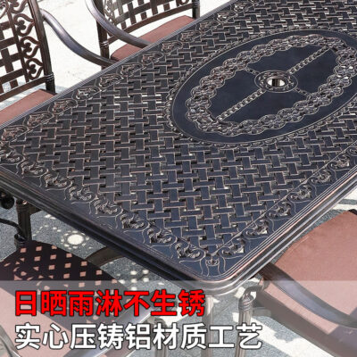 Bàn ghế ngoài trời bàn dài sân vườn biệt thự giải trí ngoài trời hoàn toàn bằng nhôm ban công thoáng ban công nhôm đúc chống thấm kết hợp chống nắng