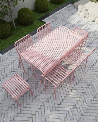 Bàn ghế sân vườn ngoài trời, nan gỗ kết hợp với chân nhôm đúc.