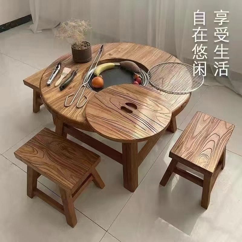 Bàn lẩu mùa đông trung quốc, bàn bếp gỗ cây cao cấp, tiện lợi cho nhà hàng BN BN-160