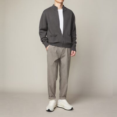 Momaike đơn giản dày nửa cổ áo dệt kim nam 2023 phong cách thu đông nam dụng cụ áo khoác cardigan 2703