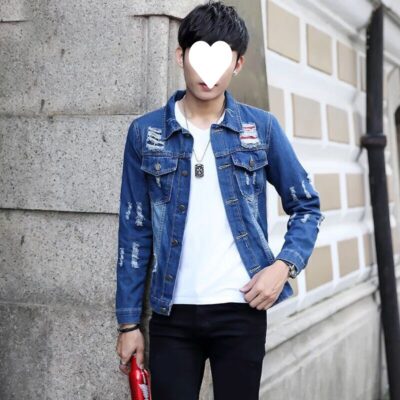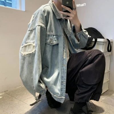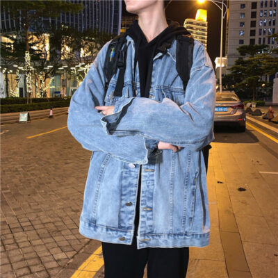 Áo khoác phong cách Hồng Kông denim xước nhỏ hợp thời trang thương hiệu áo cỡ lớn quần áo nam rộng rãi giản dị phù hợp với áo khoác nam mùa thu đông