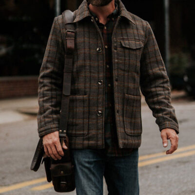 Thương mại nước ngoài dành riêng cho quần áo nam mùa thu và mùa đông áo khoác giữ nhiệt kẻ sọc cổ điển của bố áo khoác nam
