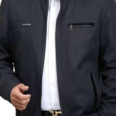 Áo khoác da nam mùa xuân và mùa thu mới áo khoác nam trung niên áo khoác da mỏng bố thường ngày áo khoác da cổ đứng