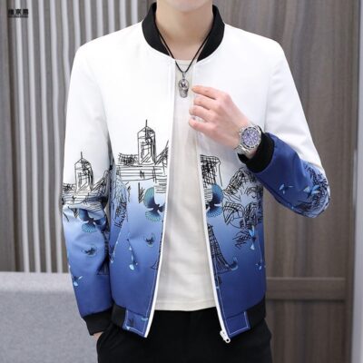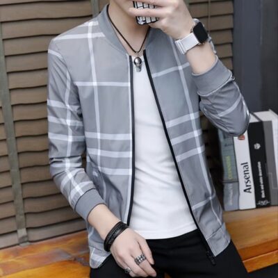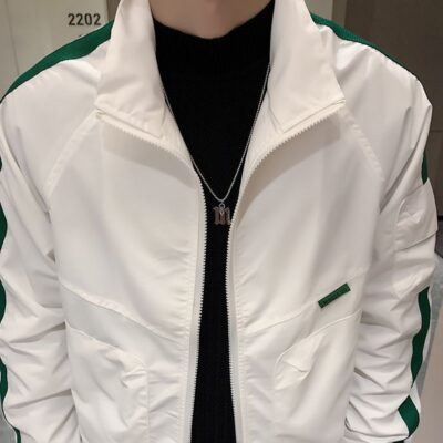 Mùa Xuân Năm 2023 Mới Cổ Đứng Áo Khoác Nam Phong Cách Hàn Quốc Sọc Gấp Gọn Áo Khoác Nam Đa Năng Áo Khoác Trắng