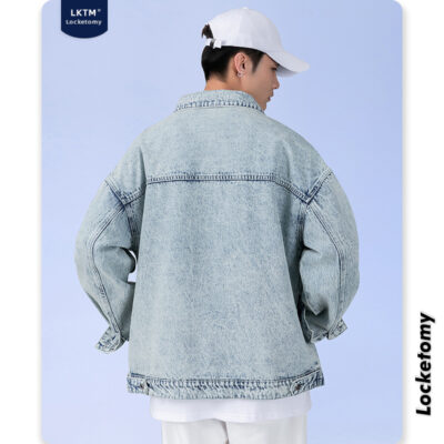 LKTM Nam #ins Đã Rửa Sạch Áo Khoác Denim Nam Dáng Rộng Retro Triều Thương Hiệu Kích Thước Lớn Đẹp Trai Tất Cả Trận Đấu áo Khoác
