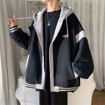 Áo khoác nam mùa xuân và mùa thu Áo khoác có mũ trùm đầu thông thường Áo khoác thể thao nam dáng rộng dành cho người trung niên và trẻ trung Quần áo đẹp trai và đa năng