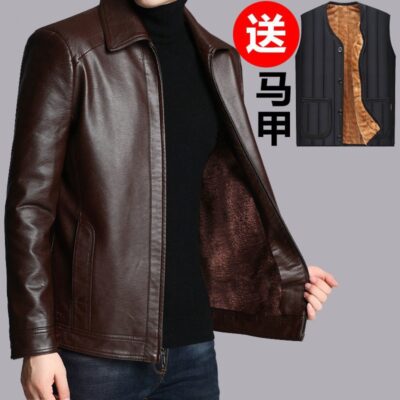 Áo khoác nam mùa thu và mùa đông Quần áo của người cha 50 tuổi cộng với áo khoác nhung dày thường ngày Quần áo mùa đông nam trung niên và cao tuổi
