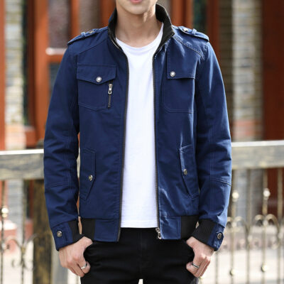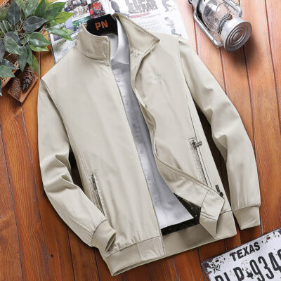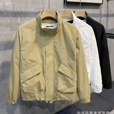 Áo khoác mùa xuân và mùa thu mới dành cho nam, áo khoác màu trơn phù hợp với mọi đối tượng, áo khoác cổ đứng ôm vừa vặn, áo khoác dài tay đẹp trai hợp thời trang giản dị