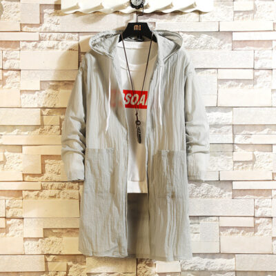 Nam Mùa Hè Siêu Mỏng Thoáng Khí Ngoài Trời Áo Gió Trung Dài Có Mũ Cặp Đôi Phối Da Phối Kích Thước Lớn Bán Buôn