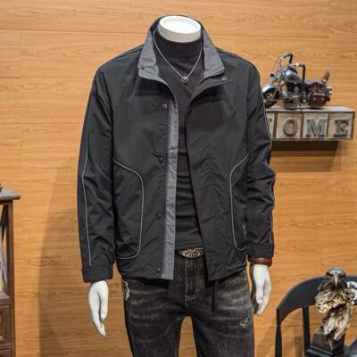 Áo khoác nam mùa xuân và mùa thu áo khoác nam cổ đứng trung niên và thanh niên phần mỏng cỡ lớn áo khoác xuất khẩu Xuất khẩu quần áo nam bình thường