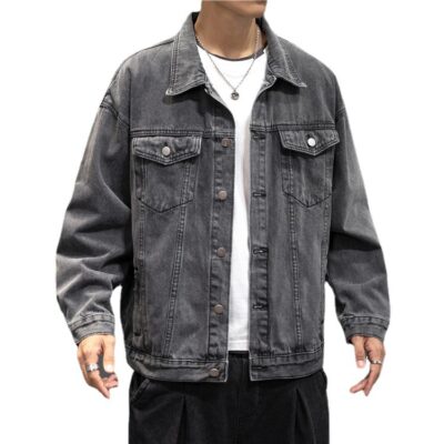 Amazon Mùa Thu Màu Trơn Nam Quần Áo Denim Cặp Đôi Mặc Áo Khoác Rộng Thanh Niên Sinh Viên Size Lớn Áo Khoác Denim Nam