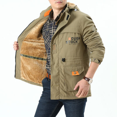 Mùa thu và mùa đông ngoài trời giản dị áo khoác trung niên áo khoác kích thước lớn trung dài cộng với nhung dày thoáng khí áo khoác nam