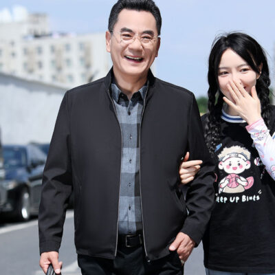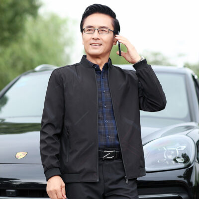 Áo khoác mùa xuân nam áo khoác nam trung niên mùa xuân và mùa thu phần mỏng cho người trung niên và người cao tuổi cổ áo đứng bố quần áo mùa thu