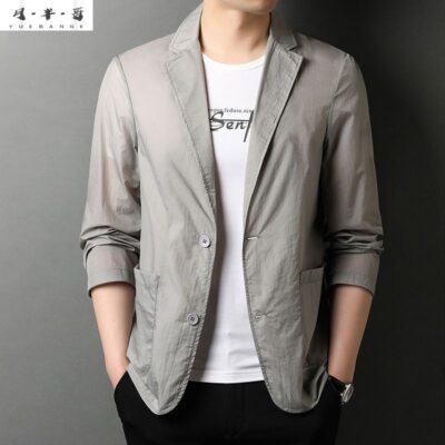 Bộ đồ mùa xuân và mùa hè dành cho nam siêu mỏng giản dị thoáng khí phiên bản Hàn Quốc mỏng phù hợp với áo khoác nam quần áo chống nắng áo khoác thủy triều