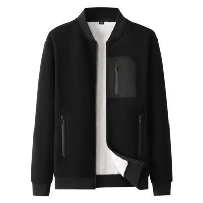 Áo khoác nam mùa xuân và mùa thu áo khoác cổ đứng dáng rộng giản dị cộng với nhung dày áo khoác nam trung niên đồng phục bóng chày nam