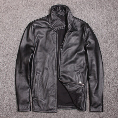 Nhà Máy Nhận Áo Khoác Da Da Nguyên Chất Trên Lớp Da Bò Áo Khoác Da Nam Ngắn Ve Áo Mỏng Phù Hợp Với Áo Khoác