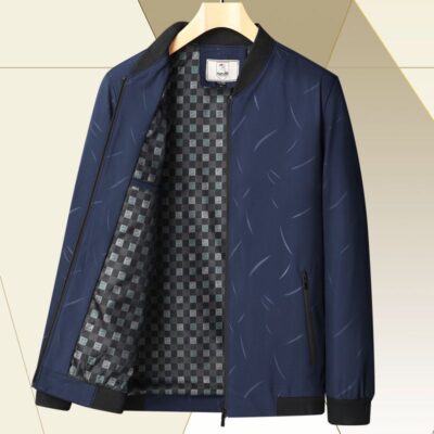 Áo Khoác Mỏng Nam Thu Đông Mới Phong Cách Doanh Nhân Thoáng Khí Dây Kéo Thời Trang Chống Nhăn Sọc Bóng Chày Cổ Đứng Áo Khoác