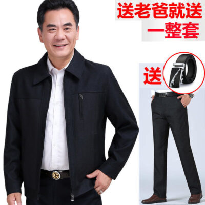 Bố phù hợp với 5060 tuổi trung niên và người già 70 ông già 80 ông nội mùa xuân và mùa thu áo khoác nam dành cho người lớn dây kéo cộng