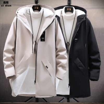 Áo khoác gió mùa xuân và mùa thu nam dài vừa phải phong cách Hàn Quốc mỏng hợp thời trang áo khoác thu đông cộng với áo khoác nam dày dặn bằng lông cừu