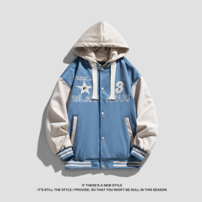 Áo khoác có mũ trùm đầu nam mùa xuân và mùa thu 2023 mới đồng màu học sinh đồng phục bóng chày áo khoác nam áo khoác nam người mẫu