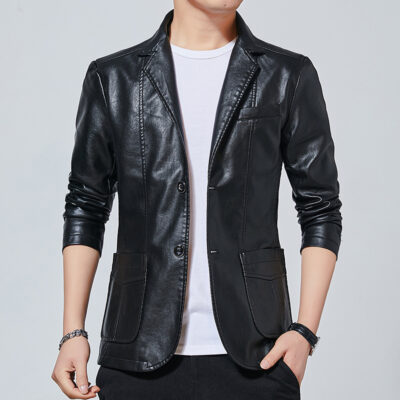 Quần áo da nam Xuất khẩu mùa xuân và mùa thu 2022 áo khoác thường mới phong cách Hàn Quốc dáng ôm cổ vest áo khoác da nam thời trang