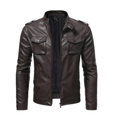 Xuất khẩu mùa thu đông 2023 áo khoác da mới xu hướng công sở nam phiên bản Hàn Quốc áo khoác da mô tô cổ đứng áo khoác nam công cụ