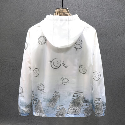 Áo khoác mỏng và nhẹ thương hiệu thời trang mùa hè cho nam Áo khoác nam in hình có mũ trùm đầu bằng lụa băng khô nhanh tay dài xu hướng mới