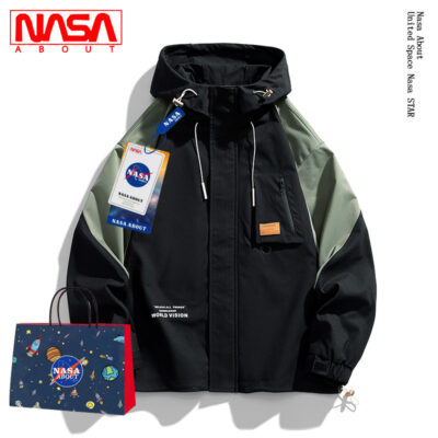 Áo khoác dụng cụ đồng thương hiệu của NASA mùa xuân và mùa thu của thương hiệu hợp thời trang trên đường phố Nhật Bản áo khoác có mũ trùm đầu nối màu tương phản rất đẹp trai