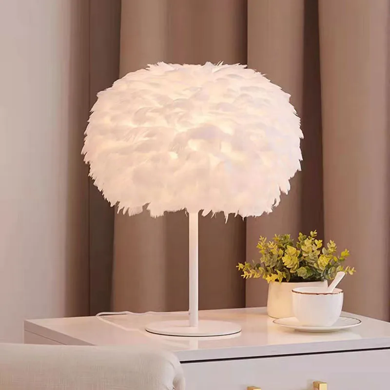 Đèn bàn lông vũ màu trắng đẹp Vàng kim loại màu trắng vàng Phòng ngủ ph – DDB-66