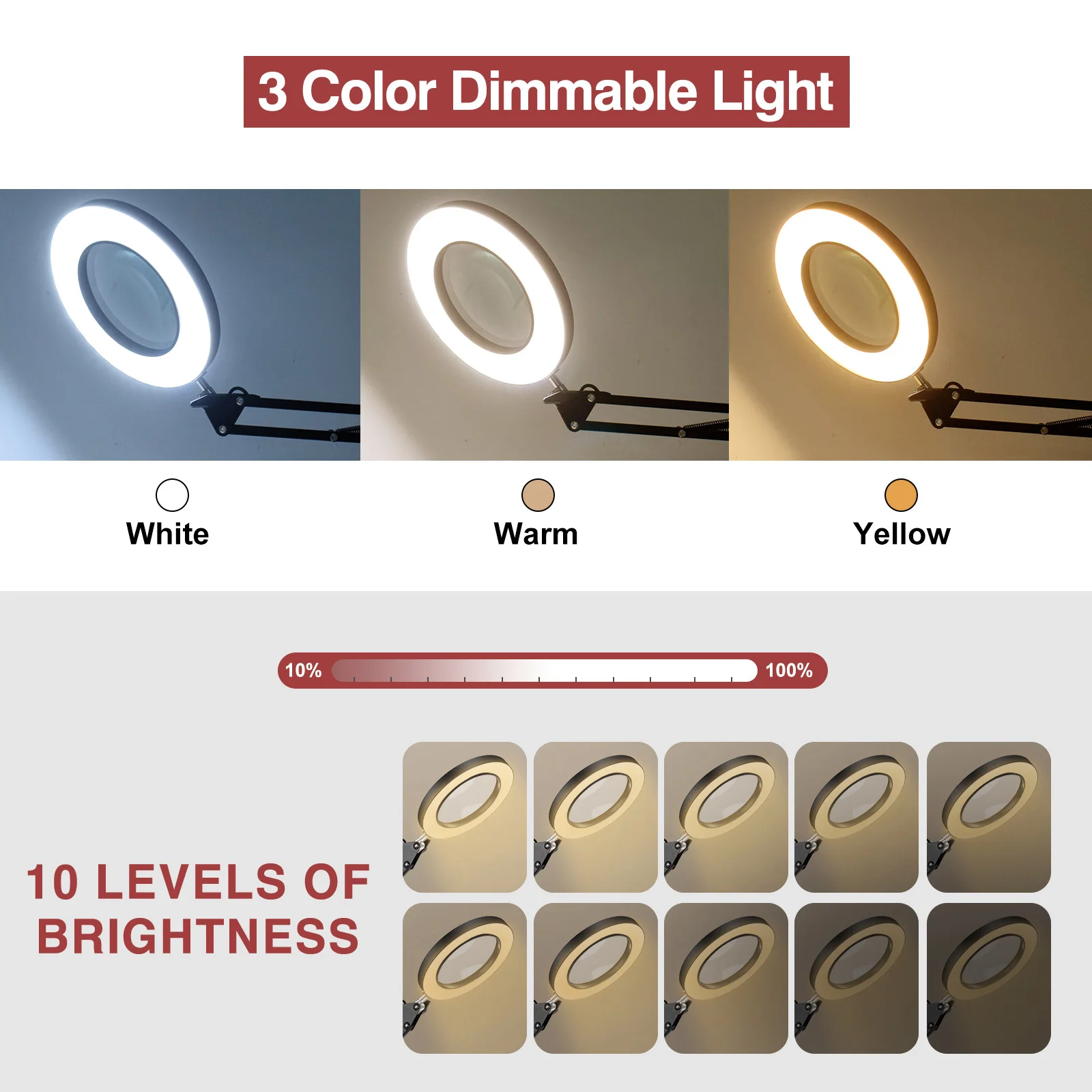 Đèn EOOKU 8W USB LED 3 Màu Đèn Bàn Mờ Để Bàn Đọc Sách Với Kính Lúp Lớn – DDB-253