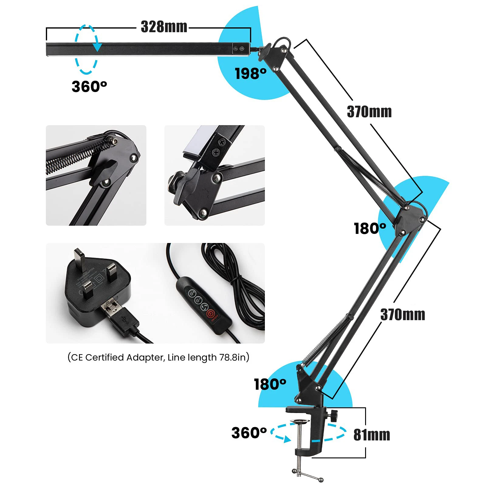 Đèn bàn LED có kẹp Đèn bàn tay dài Chăm sóc mắt có thể điều chỉnh độ s – DDB-124