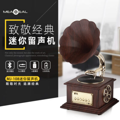 Retro Mini Loa Bluetooth Trong Nhà Trang Trí Nội Thất Kim Loại Vân Gỗ Đồng Đỏ Vàng Champagne Nhà Sản Xuất Máy Quay Đĩa Nhỏ